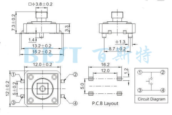 輕觸開(kāi)關(guān)TS-1103參考圖紙: